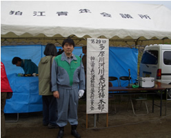 山花総支部長と、狛江市民まつりに参加しました。妻が所属している狛江福島県人会がいつも出店を出しているので、お手伝いも兼ねて参加しました。妻はまだ三ヶ月にもならないうちの子供を連れて来ましたが、当日はすごく風が強く、風邪を引いては行けないとの事で先に帰りました。 私は残って各店を回りまわしたが、色々な物を買ってしまい、散財してしまいました。
