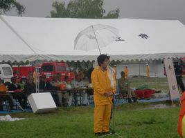 当日は台風4号が接近する中、例年通り狛江市の水防訓練が多摩川の河川敷で行われました。東京消防庁、狛江市消防団、狛江市、また市民の方々が一体となって、降りしきる雨の中実施さながらの中で、土のう積みや川に取り残された人たちの救助訓練等が行われました。