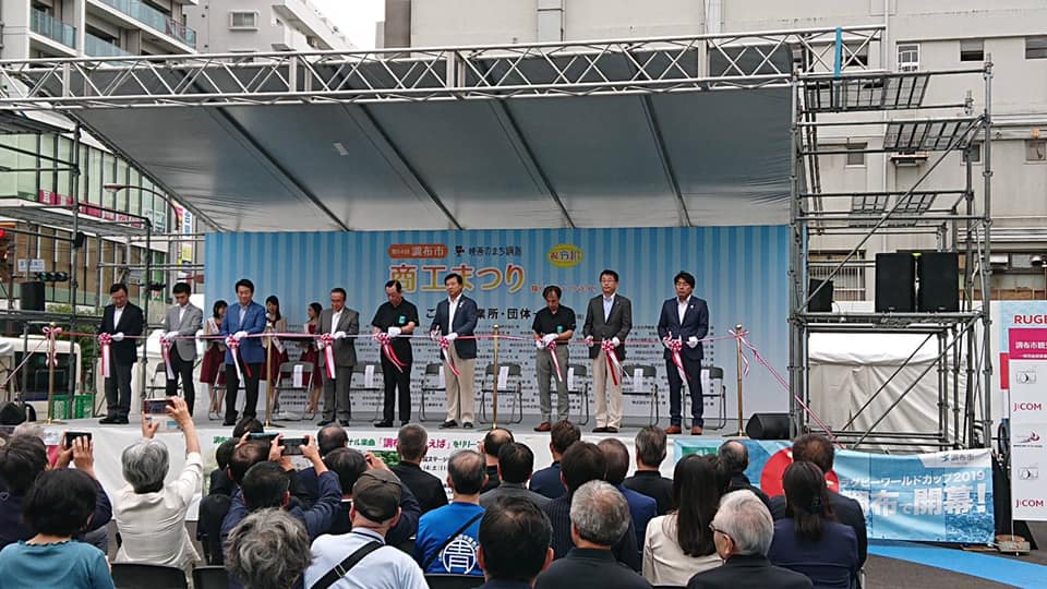 昨日は東京都庁展望台で来週から始まるラグビーワールドカップに出場する日本代表チームの壮行会が開催されました。 20のチームが熱戦を繰り広げるワールドカップがいよいよ開催です。 小池知事からはTOKYOXの豚肉が選手団に送られました。このお肉は東京の地場産のもので、僕も食べた事がありますが柔らかくて美味しいです。 今日は三連休初日、第64回調布市商工まつりが開催されテープカットをしてきました。 ラグビー開催中は駅前広場がファンゾーンとなり、パブリックビューイングなども設置されます。 またその後は狛江のFM局、コマラジが開局したのでその記念式典にてご挨拶してきました。