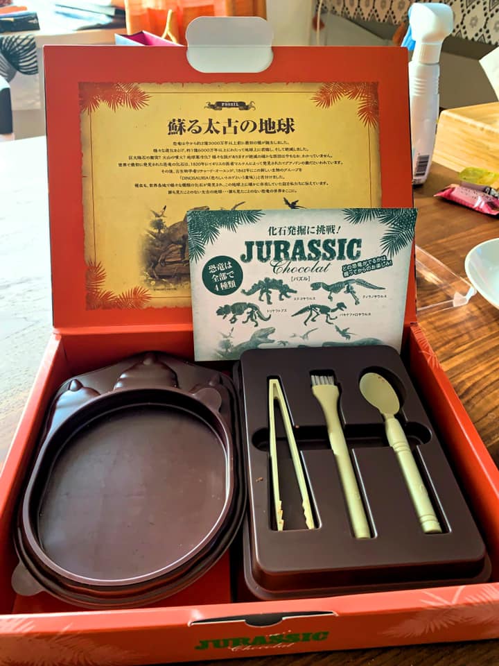 前日の14日はバレンタインで、知人から下のチビにとジュラシックの発掘チョコなるものを頂きました。パウダーに埋まってる骨の形のチョコをハケで払いながら食べるもので、面白いチョコもあるものです